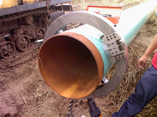 中貴天然氣管道貴陽段改線施工管道切割坡口作業(yè)現(xiàn)場